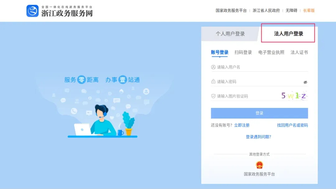 1. 搜索浙江政务服务网(https://zwfw.zj.gov.cn/),选择“法人登录”