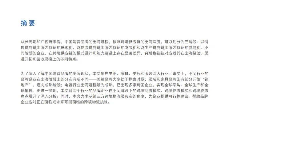 《菜鸟网络2022中国品牌出海跨境物流白皮书》深度拆解了品牌出海不同阶段的物流痛点与解决方案,为电器、家具、美妆、服装四大行业提供了关键指引。中国品牌出海已从销售供应链出海的探索期,逐步迈向物流供应链出海的发展期,部分成熟企业已进入生产供应链出海的成熟期,跨境物流成为支撑全球化布局的核心支柱。不同行业物流需求差异显著,电器、家具行业以海外仓备货为主,服装行业采用 “直发 + 仓发” 组合模式,美妆行业侧重跨境直发;物流痛点集中在合规认证、尾程配送、退货处理、效期管理等方面,需针对性优化;数字化运营与精细化管理成为关键,如海外仓唯一码管理、批次管理、全链路数据可视化等能力不可或缺。想要了解更多内容,请关注【大数快讯】公众号。
