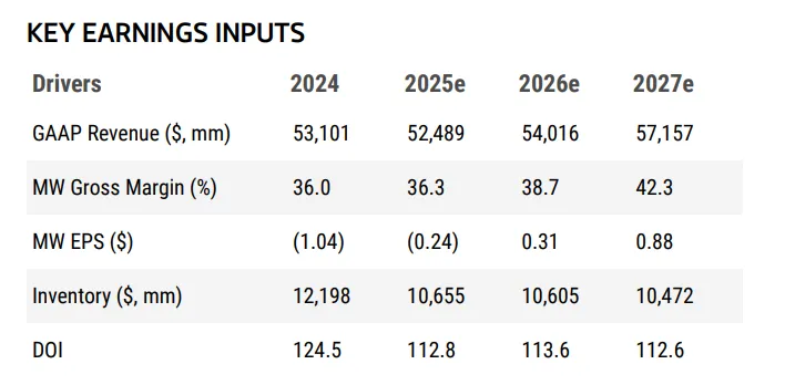展望明年第一季度(3月季度),摩根士丹利预测英特尔营收为125.52亿美元,略高于华尔街预期的125.25亿美元。但在毛利率方面,摩根士丹利给出的预测仅为34.9%,低于市场预期的36.1%,这反映了Lunar Lake较低的毛利率以及18A工艺启动成本带来的持续压力。