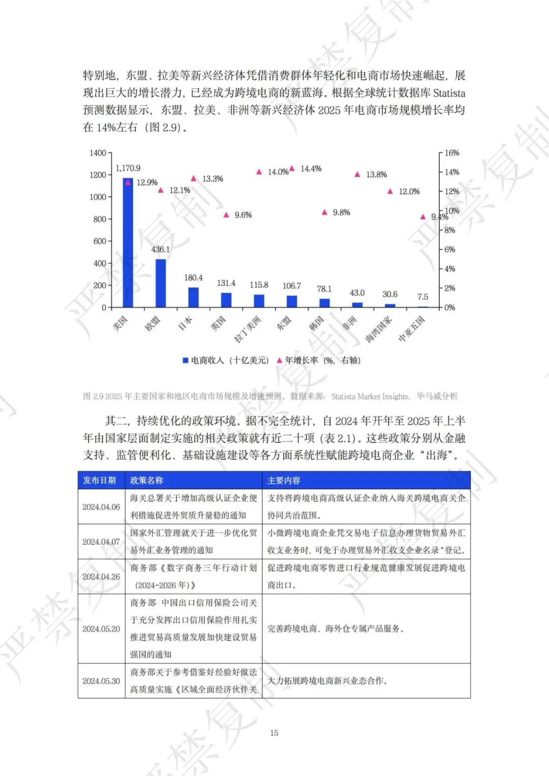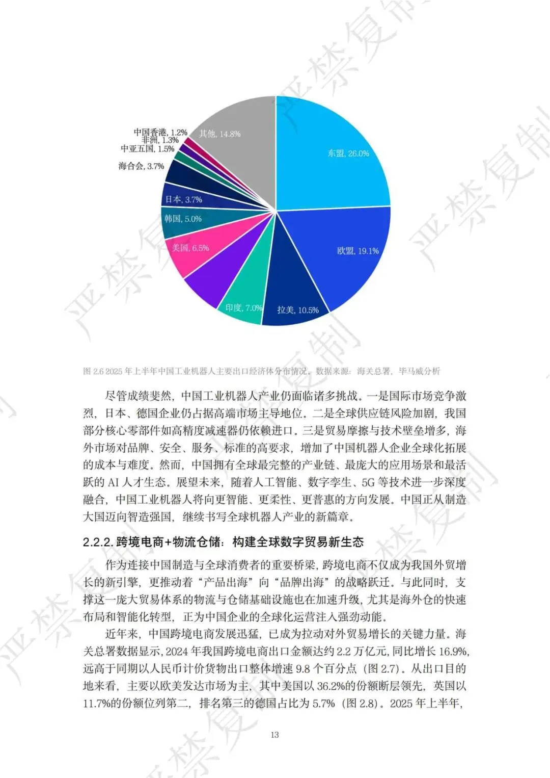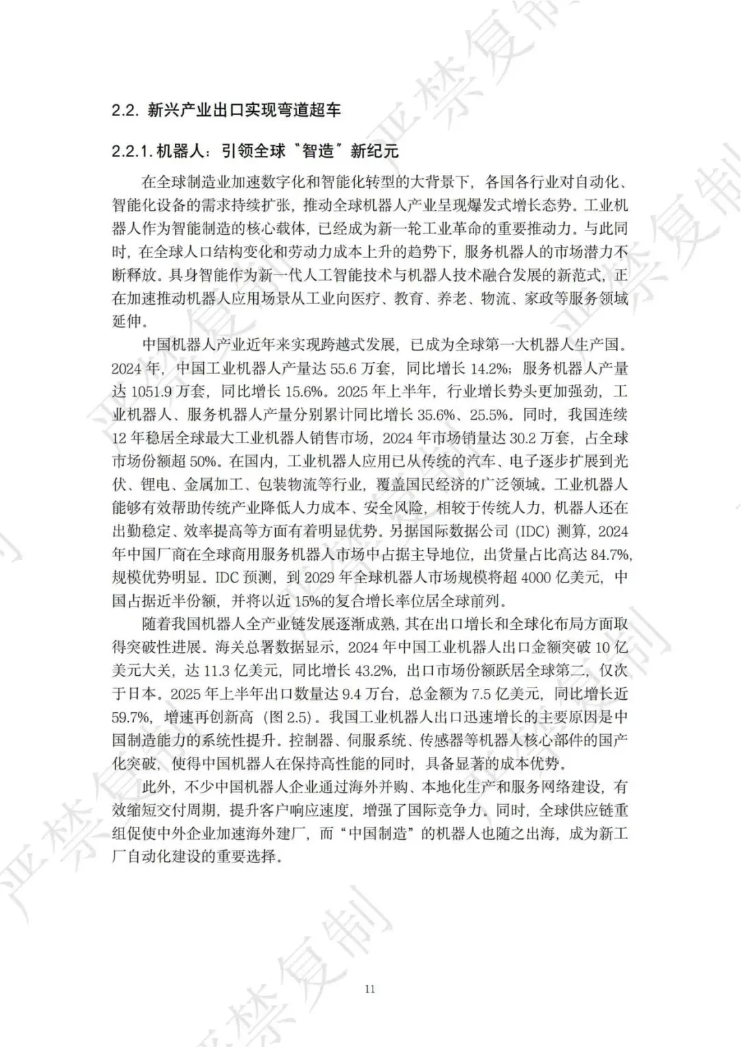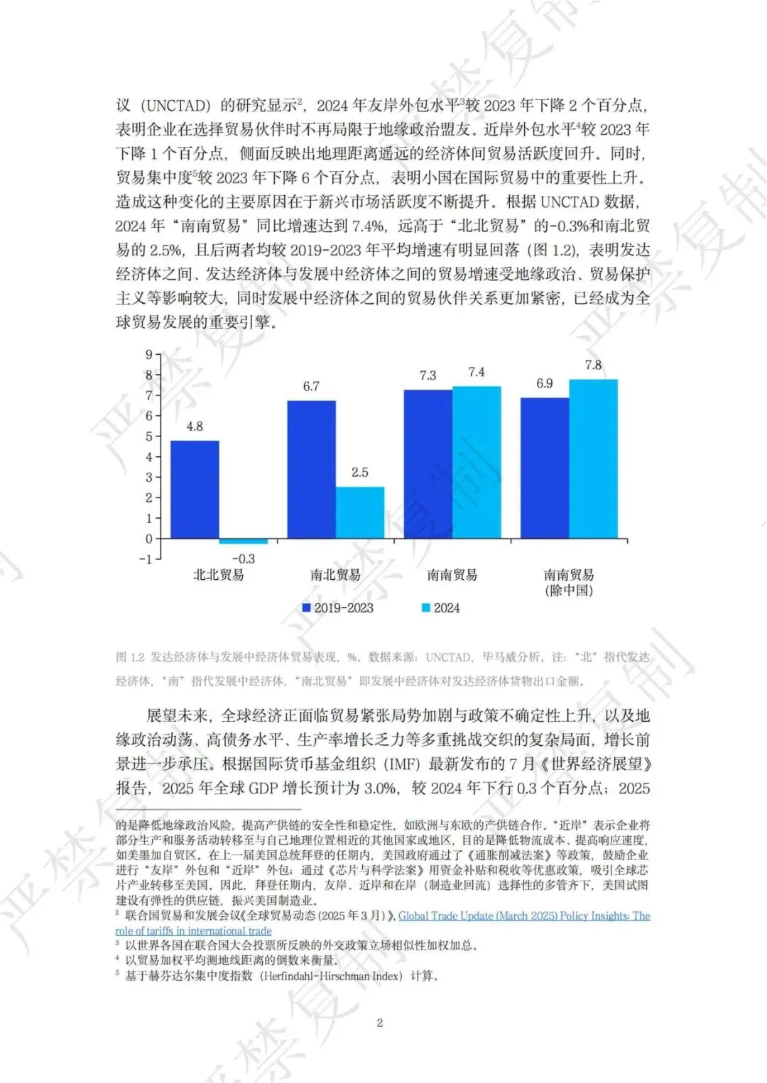 2024年以来,伴随全球通胀持续降温,海外经济体相继进入降息周期,金融条件转向宽松,全球制造业景气逐步修复并开启补库周期,带动货物贸易回暖。从趋势上看,2024年下半年全球经济增长动能有所减弱,叠加美国大选、地缘政治不确定性加大,以及极端天气扰动等因素的影响,使得全球及欧美制造业景气出现收缩、补库存步伐放缓。但东盟、印度、巴西等新兴经济体制造业景气表现依然强劲,加之“全球南方”经济体经贸合作日趋紧密,全球贸易延续温和复苏态势。根据世界贸易组织(WTO)数据显示,2024年全球货物出口金额为24.4万亿美元,同比增长2.3%,较上半年增速提升1.3个百分点。进入2025年后,全球制造业PMI在年初出现短暂上扬,但很快便因美国关税政策扰动,于4月再度回落至收缩区间。与此同时,在未来高关税预期下,全球贸易出现明显前置效应,一季度全球货物贸易量环比增长3.6%,同比增长5.3%。不过二季度开始,贸易前置现象逐渐消退,货物贸易量指数同比增速明显回落。
