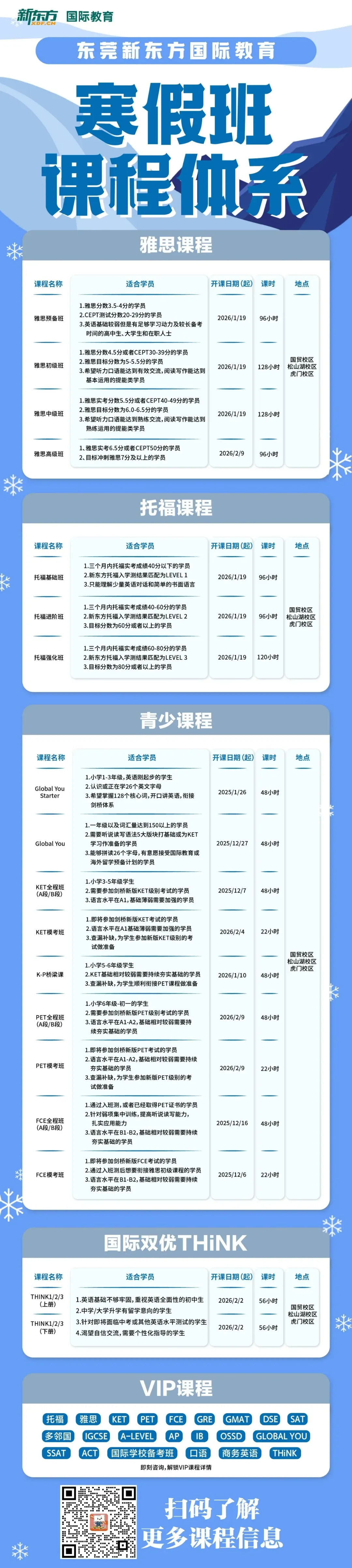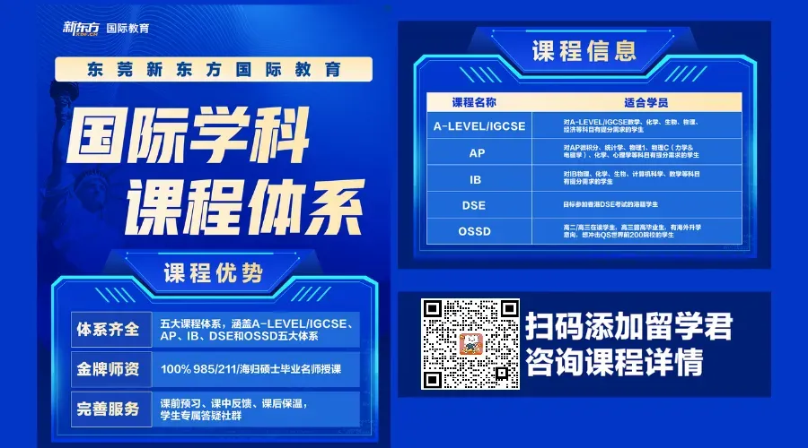 东莞新东方秋季课程火热招生中,名额有限,满班在即!欢迎联系留学君,选择适合孩子的课程和班级。