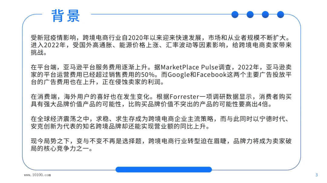 指出,品牌化是跨境电商突围核心,面临营销成本上升、跨文化适配等难点。报告详解社媒、内容、网红等营销渠道,搭配安克、李宁等案例,提供实操策略。