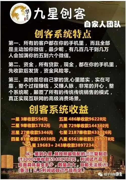 二、会员制现在越来越多的企业实施了会员制,大家走到哪里是不是都有邀请顾客办会员卡,其实真正会员制来临的时候,就会让很多传统的企业和贸易商瞬间更加难做生意,会员制将会加速从生产商到消费者的手中的一个过程。如果我们现在还是用传统的方式传统的经营方式,开店去做代理的话将会被淘汰。九星创客这个工具就解决了这个会员难的问题,我们共享全国的所有的资源共享所有的经销商,供应商,每个人都将拥有一个掌上超市,自用省钱分享赚钱。圈层社交电商九星创客就打破了圈层,打个比方,我们做微商的要去整合另外一个微商是不是很难?我们做保险的整合另外一个保险是不是很难?我们做同行业的整合同行业是不是很难?但是在九星创客这个工具里面我们可以融合365行,行行都可以融进来,大家没有冲突,大家可以共同分享成果。你可以分享竞争对手,你也可以分享同行,大家成为合作伙伴,他就做到真正的融合。也就做到了真正的圈层突破,任何一个人进来不管你是上市公司的老板,还是行业的大咖,还是普通的老百姓,都可以通过九星创客这个公正公平的平台让大家去展现。所以说2026年九星创客,将是所有草根,所有直销和传统行业遇到瓶颈的人一个逆袭和翻身的机会,给一对有力的翅膀让他飞得更高,更远,事业做的更大。九星创客这个工具,只会对我们现在所做的任何行业有无限的帮助,不会去坑人不会去害人,也不会去影响任何现代做的职业,只会对我们所有的行业锦上添花。看懂了九星创客价值千万,慢一天损失十万,慢一分钟损失一万。今天你没有看懂,今天就有很多人在分享,慢分享一天就意味着损失可能是一个团队,一个团队的价值是无法用金钱来衡量的,所以说大家看懂了就赶快行动。最后送大家八个字未来已来,时不我待。感谢各位!