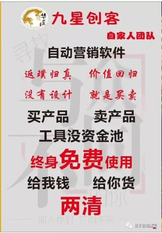 微商和网商的痛点微商的痛点在于库存,级别越高,所交代理的费用越高。网商就在于流量,需要花大量的资金去购买流量才能有销量。如果有一个工具能够把我们以上的问题全部解决掉,大家说好还是不好?能解决这个问题的就是九星创客工具。