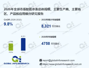 据GIR (Global Info Research)调研,按收入计,2025年全球智能水表收入大约4365百万美元,预计2032年达到8321百万美元,2026至2032期间,年复合增长率CAGR为9.8%。