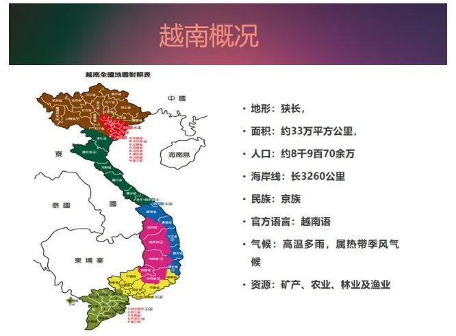- 地理与经济:越南是连接东南亚与东亚的枢纽,推行行政审批简化、数字资产立法等改革,劳动力丰富且成本低,基础设施持续完善,进出口规模较大。