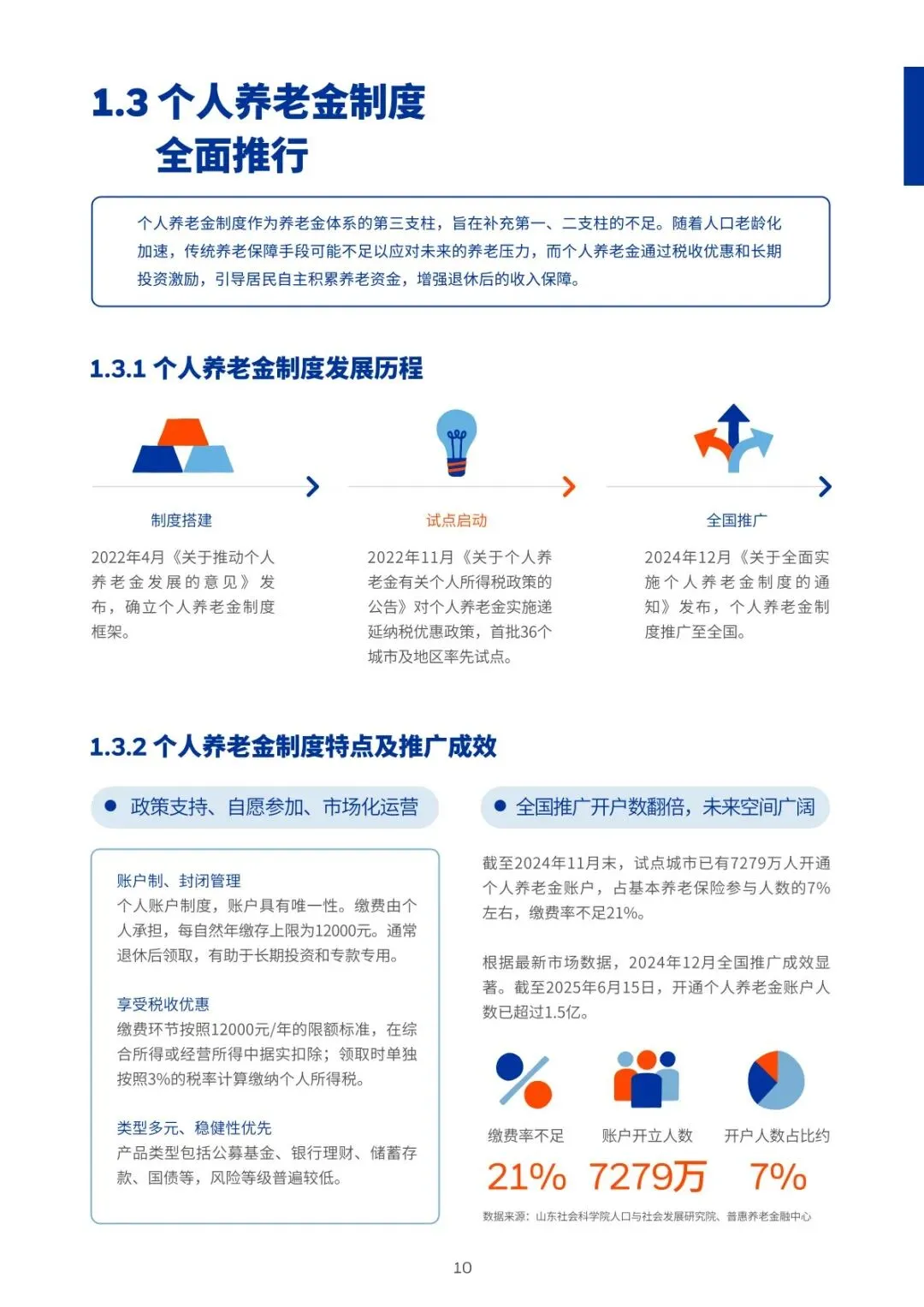 报告围绕 “老龄化 + 低利率” 背景下的养老金金融行业发展,剖析我国三支柱养老金体系现状,基于全国 1.4 万余份问卷调研与线下访谈,揭示居民养老意识、需求与产品供给的错配问题。详解制度化与非制度化养老金融产品特征,分享建行 “1314” 养老服务体系等机构实践,借鉴美国养老金制度经验,为行业发展与居民养老规划提供参考。