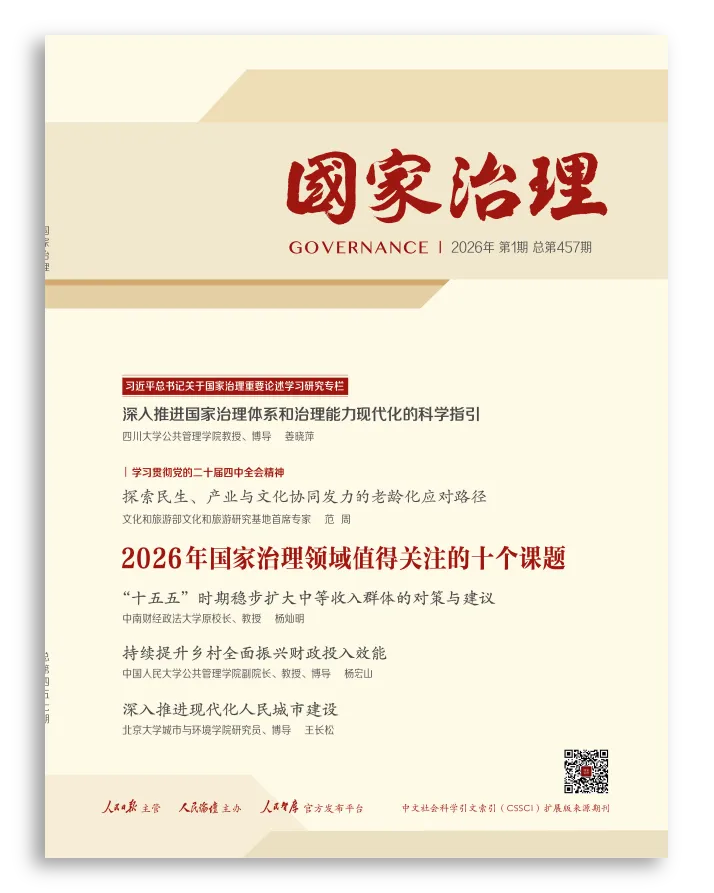 2025年是“十四五”收官之年,回望“十四五”时期,我国发展历程极不寻常、极不平凡。以习近平同志为核心的党中央团结带领全党全国各族人民化危机、闯难关、应变局、开新局,克服重重困难挑战,圆满完成目标任务,我国经济实力、科技实力、国防实力、综合国力跃上新台阶,绿水青山成为亮丽底色,人民群众获得感幸福感安全感不断增强,在中国式现代化新征程上迈出稳健步伐。2026年是“十五五”开局之年,在新年贺词中,习近平总书记提出殷殷嘱托:“我们要锚定目标任务,坚定信心、乘势而上,扎实推动高质量发展,进一步全面深化改革开放,推进全体人民共同富裕,续写中国奇迹新篇章。”贯彻落实习近平总书记的殷殷嘱托,2026年国家治理领域有哪些重大课题值得我们关注?2025年11—12月,《国家治理》杂志开展“2026年国家治理领域值得关注的十个课题”大型调查活动。在前期征集百余位各领域专家学者建议基础上,初步提炼出16个候选课题,面向全国社会各界人士进行网络问卷调查和投票。截至目前,“国家治理领域值得关注的十个课题”大型调查活动已连续开展七年,入选课题反映国家治理现代化进程中亟待研究的重大命题,是观测国家治理理论和实践发展趋势的重要风向标。《国家治理》编辑部在连续多年重大课题追踪研究基础上,结合专家意见和网络调查结果,最终遴选出2026年国家治理领域值得关注的十个课题,分别是:当前,人工智能技术加速迭代演进,正在深刻改变人类生产生活方式、重塑全球产业格局。人工智能发展和治理,成为世界各国面临的共同课题。从“人工智能爆发式发展对国家治理的影响”(2024),到“完善人工智能发展和治理体系”(2025),再到“‘人工智能+’背景下的治理范式变革与风险防控”(2026),人工智能相关课题连续三年入选“国家治理领域值得关注的十个课题”,反映出专家学者和广大读者对人工智能发展与治理问题的持续关注。人类发展的历史雄辩地证明,技术不仅是工具性革新,更是深刻重塑社会结构与治理逻辑的力量。技术革新产生复杂的衍生风险,构成当前国家治理必须面对的重要命题。党的二十届四中全会提出“全面实施‘人工智能+’行动,以人工智能引领科研范式变革,加强人工智能同产业发展、文化建设、民生保障、社会治理相结合”,强调“加强人工智能治理,完善相关法律法规、政策制度、应用规范、伦理准则”。随着“人工智能+”行动开展,人工智能进入千行百业,针对“人工智能+”与产业融合、数智化转型、国家安全、大模型的开发和应用、全球网络空间治理等议题的讨论,在理论界、学术界广泛展开。人工智能大模型深度融入公共决策、社会服务、城市管理等领域,催生治理理念、运行机制与服务模式的深刻变化,引发决策范式的结构性变革。大模型替代经验判断,通过海量数据挖掘与政策仿真,形成“数据—知识—决策”的智能闭环,在大幅提升治理的精准性与预见性的同时,也带来一系列风险挑战。例如,治理主体异化、算法偏见、责任归属模糊、敏感数据泄露与隐私侵犯风险等。因此,亟需研究国家层面的人工智能治理框架,构建“数据驱动、人机协同”的治理新范式。重点包括:建立人工智能辅助决策模型,实现政策效果的精准预测和动态优化;强化数据安全和隐私保护,在保障安全的前提下充分释放数据价值,推动治理模式创新;提升算法透明度、公平性与可解释性,探索金融、医疗、政务等重点领域人机协同决策的权责界定和监管框架,加快自主可控的人工智能治理技术体系建设等。治国之道,富民为始。习近平总书记强调:“我们始终坚定人民立场,强调消除贫困、改善民生、实现共同富裕是社会主义的本质要求,是我们党坚持全心全意为人民服务根本宗旨的重要体现,是党和政府的重大责任。”党的二十届四中全会提出:“稳步扩大中等收入群体规模”,“推动形成橄榄型分配格局”,“扎实推进全体人民共同富裕”。从“共同富裕的内涵与实现路径”(2022),到“共同富裕的阶段性衡量标准”(2023),再到“共同富裕背景下的乡村振兴”(2024),共同富裕课题连续三年入选“国家治理领域值得关注的十个课题”。2026年入选的“稳步扩大中等收入群体规模的重点与难点”课题,是共同富裕课题的深化延伸。国家统计局将家庭年收入在10万至50万元的群体列入中等收入群体。据此标准,我国目前中等收入群体总人数突破4亿人,主要有国有企业管理层和技术人员,大中型民营企业领导层,科研机构、金融、教育、会计、评估、计算、咨询、中介等行业员工等。2022年11月,习近平主席在亚太经合组织工商领导人峰会上提出“使中等收入群体在未来15年超过8亿”的目标。党的二十届四中全会首次提出“中等收入群体倍增”计划,目标将中等收入人口从4.2亿增至6亿左右。稳步扩大中等收入群体,从理论上看是形成橄榄型分配格局、缩小收入差距的关键;从发展阶段看,是跨越“中等收入陷阱”的重要支撑;从国际经验看,是社会稳定的“压舱石”。当前,我国扩大中等收入群体规模,主要面临以下几方面困难。一是我国的中等收入群体城乡分布不均衡,多集中在城镇,农村人口难以进入。二是我国经济增速放缓,部分中等收入人群,难以维持原有的收入水平。三是潜在中等收入群体向实际中等收入群体