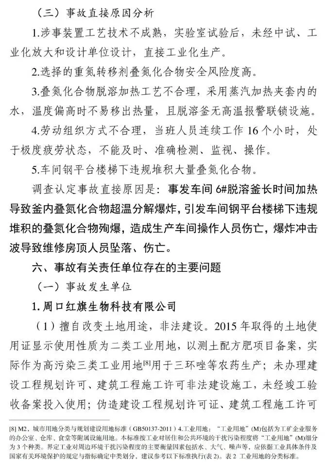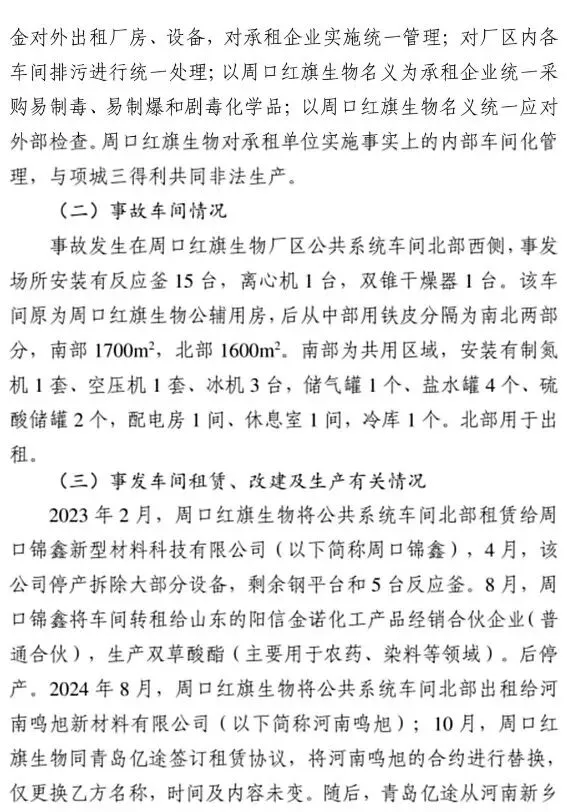 一:事故概述 2025年3月20日11时9分许,位于周口市项城市的周口红旗生物科技有限公司发生一起爆炸事故,造成6人死亡、3人受伤,直接经济损失1383万元。
