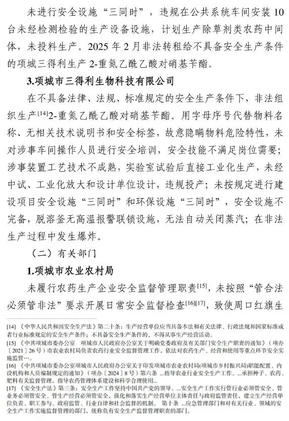 调查认定,该起爆炸事故是一起因企业违法出租、非法生产,地方党委政府及其相关部门和单位履职不到位导致的生产安全责任事故。