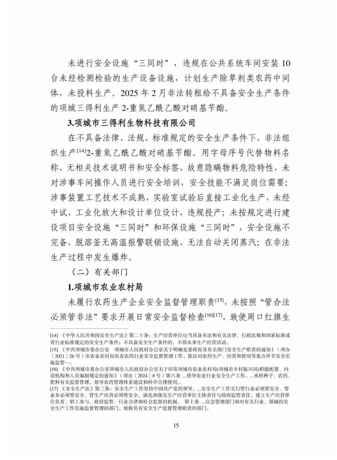 调查认定:该起爆炸事故是一起因企业违法出租、非法生产,地方党委政府及其相关部门和单位履职不到位导致的生产安全责任事故