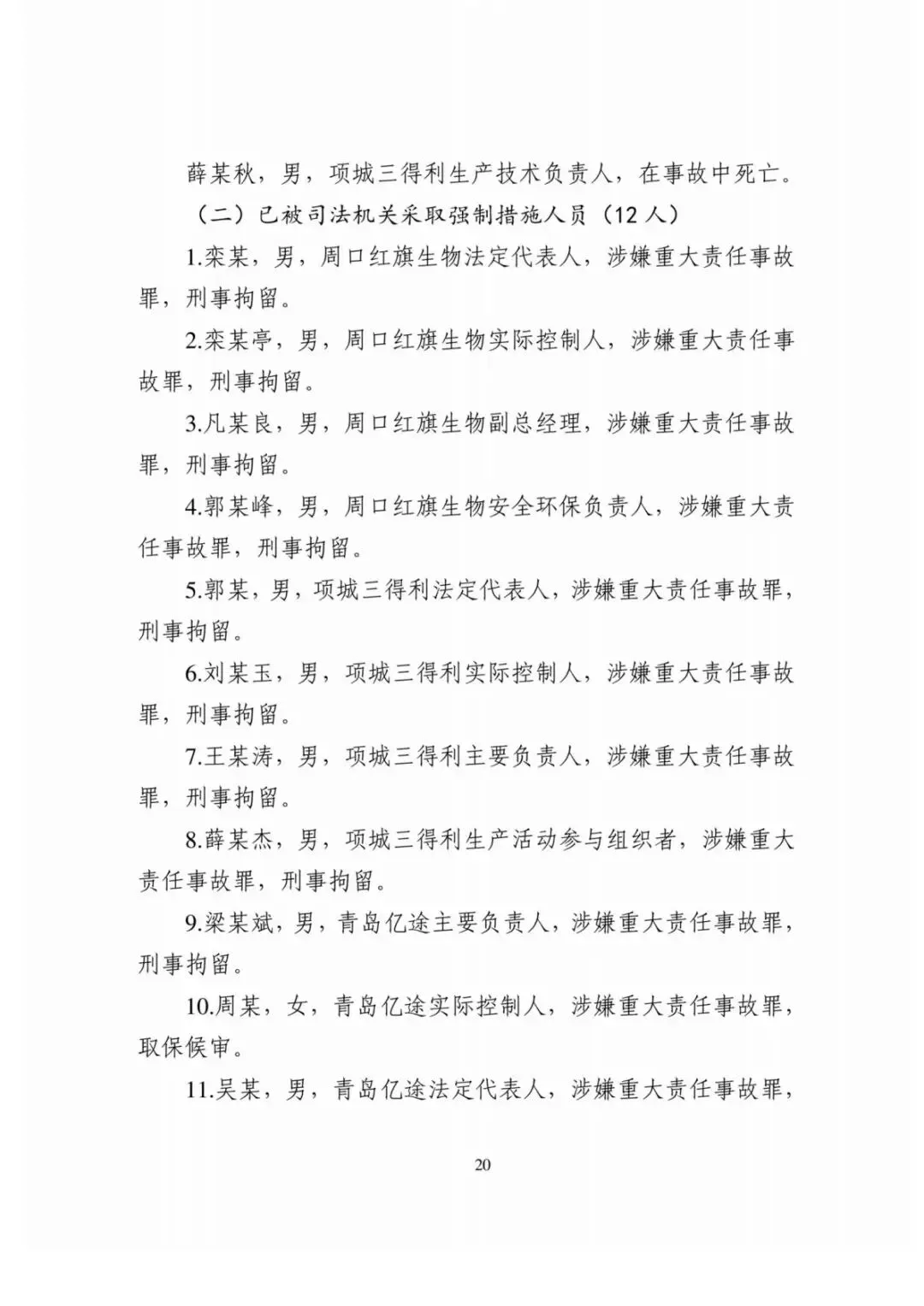 周口红旗生物法定代表人栾某、周口红旗生物实际控制人栾某婷等12人涉嫌重大责任事故罪,已被司法机关采取强制措施