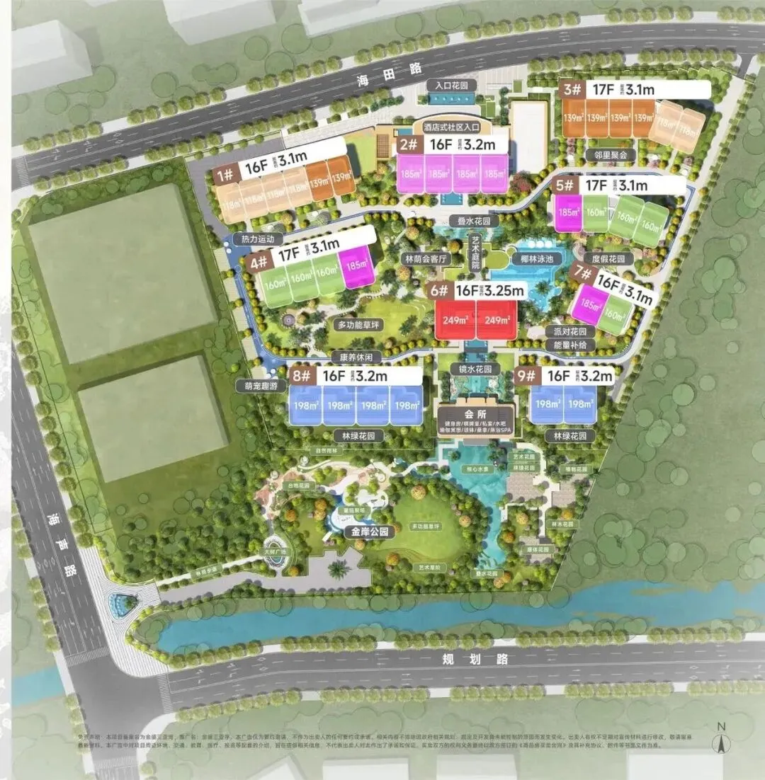 项目在景观设计上提出了“先入公园再归家”的创新动线,通过约1.3万㎡的金岸公园与约2.8万㎡的热带雨林秘境,构筑了一个人与自然深度参与的场景生态22。植物多样性:社区内配置了200多种植物,这种丰富的种类足以媲美海口的生态豪宅(如仁恒滨江园或万华江东麓岛),在三亚乃至全国范围内打造了“最像热带雨林”的居住环境22。野奢哲学:设计借鉴了巴厘岛阿丽拉等奢华酒店的自然野奢风格,强调空间的松弛感与生长感。建筑美学与技术性能的平衡