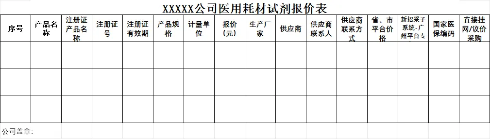 2.公司医用耗材试剂报价表模板