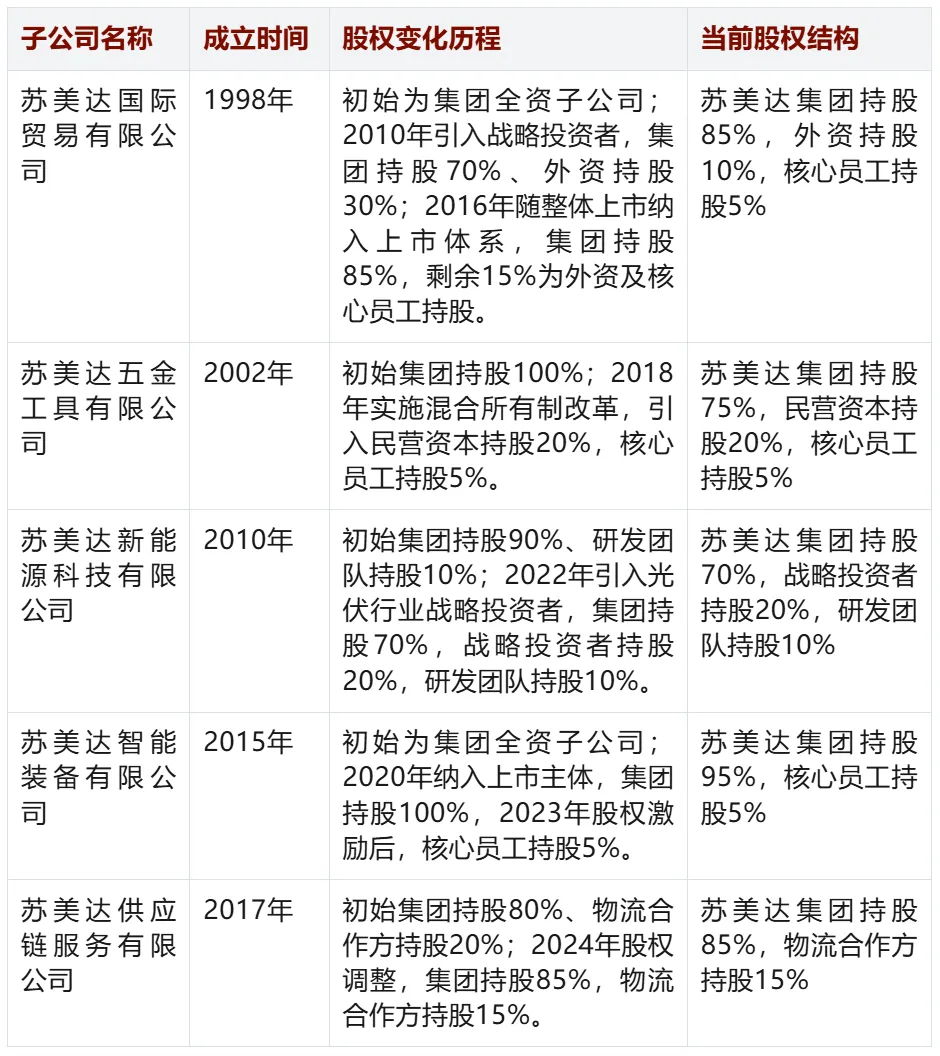 苏美达集团前身为中国机械设备进出口总公司江苏分公司,历经多次改制与股权调整,形成当前以国有控股为核心、多元化股权结构的格局,下属核心子公司股权变化与历史沿革如下: