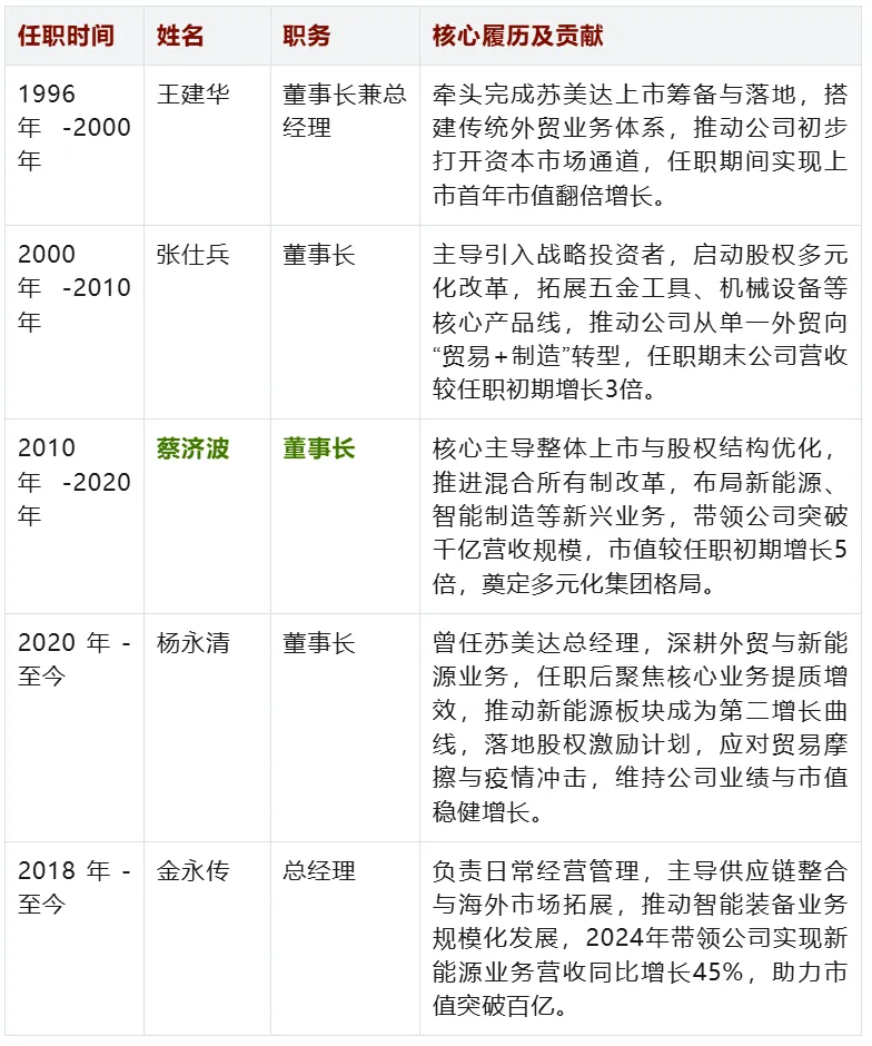 蔡济波拥有30年外贸及国企管理经验,任职期间深度参与苏美达从传统外贸企业向多元化集团的转型,深谙国企股权改革逻辑,其主导的股权设计既满足国有资产保值增值要求,又通过混合所有制改革激发企业活力,为苏美达后续业务扩张与市值增长奠定基础。整体上市、员工持股计划等核心股权动作,均为其基于国企改革政策与企业发展需求的精准设计。