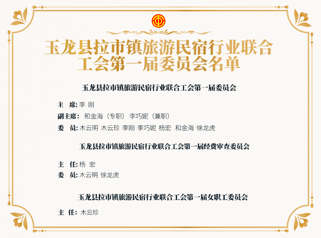 附:玉龙县拉市镇旅游民宿行业联合工会第一届委员会名单