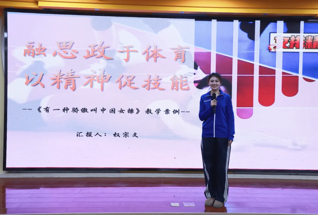 权宗文老师带来《有一种骄傲叫中国女排》思政融合教学案例,以 “技能 + 精神”双主线并行,将女排精神与排球正面双手垫球技能深度融合。热身环节融入社会主义核心价值观呼喊,导入环节通过女排夺冠视频激发爱国情怀,技能练习设计“五关递进”闯关模式,从徒手练习到双人对垫,全程贯穿团结协作、顽强拼搏的精神内核,实现“育体”与“育心”的统一,成为思政元素自然融入课堂的优秀范例。