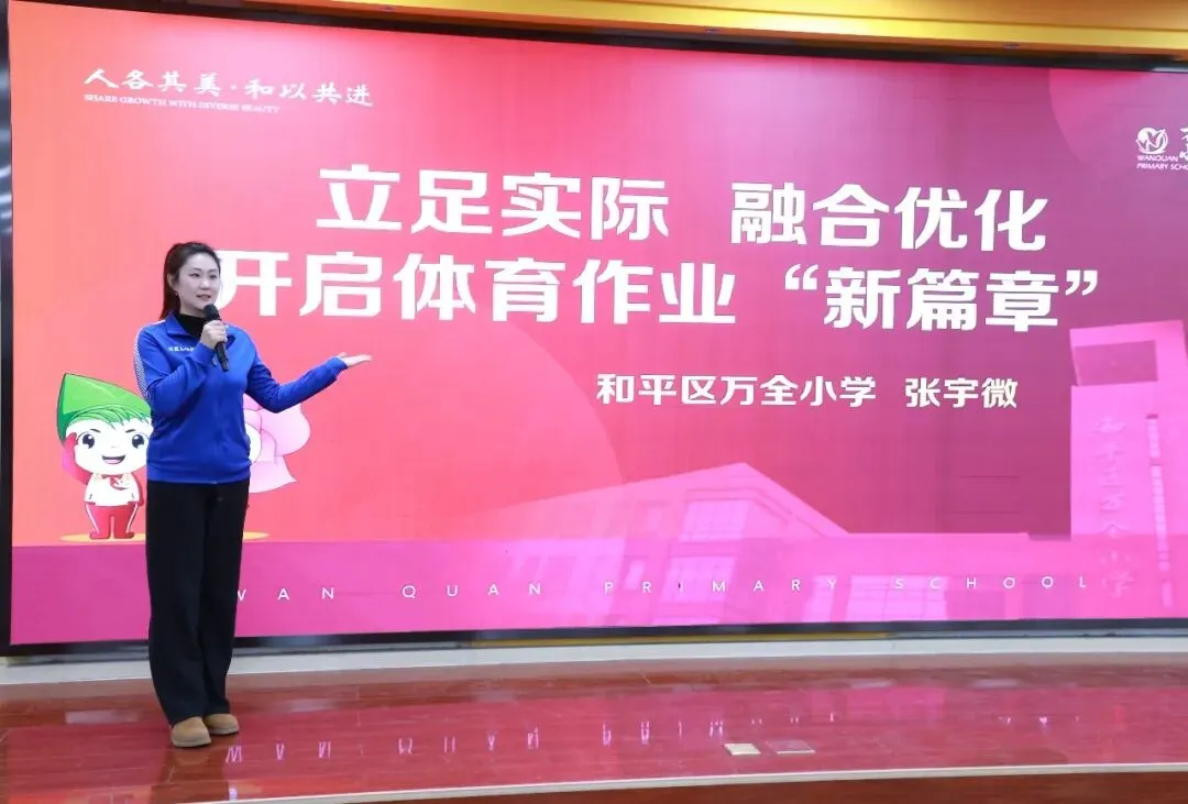 张宇微老师分享《立足实际,融合优化,开启体育作业 “新篇章”》案例,打破传统体育作业局限。推出寒暑假体育锻炼指南、“万全吉尼斯 —— 体育达人赛”、“喜迎二十大 红色长跑行”等特色作业,借助“天天跳绳”APP 融入信息技术,联动家长形成家校合力,让作业兼具针对性、趣味性与综合性,有效落实“每日锻炼两小时”的要求,衔接校内教学与校外锻炼。