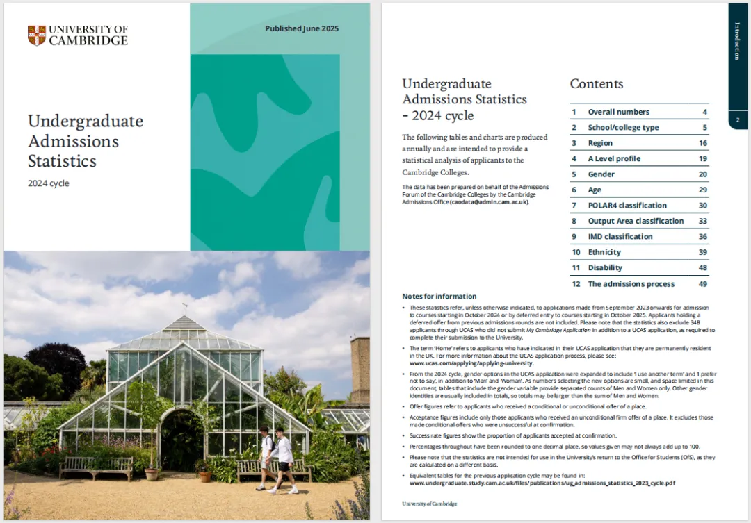 剑桥大学招生官发布的2024 cycle录取报告,揭开中国学生申请剑桥的层层内幕——原来被我们深信不疑的喜报,隐藏着这么多秘密。牛津剑桥的申请竞争从未停止,每当录取季,各大机构、学校发布的"喜报"铺天盖地。但那些数字真的准确吗?剑桥大学刚刚发布的2024届全球高中录取报告给出了意想不到的答案。报告长达50多页,覆盖全球3000多所高中,不仅包括录取数和入学数,还细分了学科、学校类型、地区分布和A Level成绩结构等维度。在牛津剑桥只能择其一申请的规则下,2024届申请季,两校共收到45214份申请,最终录取8562人,录取率为18.9%。与美国藤校个位数的录取率相比,这个数字显得相对友好。剑桥大学2024届共收到22153份申请,比上一年增长3.3%;录取4769人,增长4.5%。然而最终入读人数为3632人,入学率仅为76%。这意味着,每录取100人,就有24人最终未能入读剑桥。中国内地学生的申请人数高达2308人,位列全球第一。最终,剑桥向中国学生发出了343份录取,其中252人成功入读,录取率为14.8%。然而,在录取率和入读率方面表现最佳的是新加坡学生,入读率从19.3%上升至26.5%。民间统计与官方数据存在显著差异。非官方统计通常偏少,主要因为部分来自海外的学生以及某些体制内学校未被纳入统计。同时,民间统计的是"录取数"而非"入学数"。录取与入学之间的差值不容忽视:2024届内地学生差值达91人,入学率为73.4%。这意味着,每10份录取中,就有近3名学生最终没有入读。原因包括未达到成绩要求、转投其他国家和地区高校,或因专业选择英国其他大学。报告披露,中国内地共有73所高中获得剑桥录取,遍布各大城市,呈现出多点开花的态势。从地域分布看,上海学校数量最多,共23所,占比最高。这与上海A Level学校数量多,以及存在大量全日制脱产机构和培训机构有关。北京虽然申请人数不多,但录取概率相对较高。深圳则凭借深国交在Offer总量上表现尤为亮眼。整体呈现 "以上海为核心、珠三角与长三角多点开花" 的格局。其中,领科教育实现了9录9入,入学率达到100%。从专业角度看,理工类(Sciences)专业申请占比57.6%,录取占比49.5%,成功率为14.1%;而文社科(Arts, Humanities & Social Sciences)专业申请占比42.4%,录取占比50.5%,成功率为19.5%。文社科专业录取情况整体更为友好。剑桥的自然科学专业设置独特,将生物、化学等归入其中,学生在大一、大二需要学习物理、化学和生物基础课程,大三才专注于特定方向的深入学习。在成绩要求方面,申请文社科专业,A-Level成绩在A*A*A*/A*A*A/A*AA的申请者比较有竞争力;而理工科专业基本要求成绩达到A*A*A*,低于此档位,录取概率会显著下降。申请剑桥,不同专业还需参加特定笔试。这些笔试更注重考察学生的学术潜力和思维强度,而非做题速度,重在测试表达能力和推理逻辑。录取是认可,未录取也非定局。正如那位放弃牛津选择帝国理工的学生,当专业方向与个人志趣高度契合时,适合自己的选择才真正闪耀着智慧的光芒。申请之路,道阻且长,但我们终将抵达彼岸。注: 本文内容整理自剑桥大学官方录取报告,仅供参考。欢迎后台留言,我们会安排老师进行1v1沟通