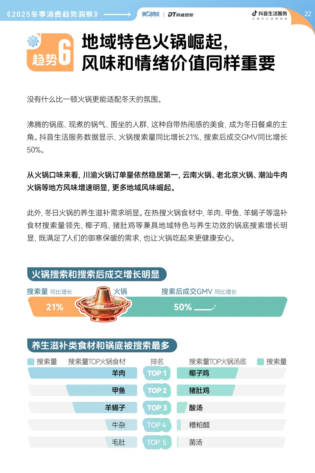 冬日餐桌注重风味与情绪价值,地域特色火锅和传统美食需求上涨,川渝火锅稳居订单榜首,羊肉、甲鱼等温补食材备受青睐。车厘子搜索量同比激增 680%,烤红薯等烟火气美食持续热销,冰淇淋反季热销成为新潮流,50 岁以上群体和男性消费者成为饮品消费新增长点。