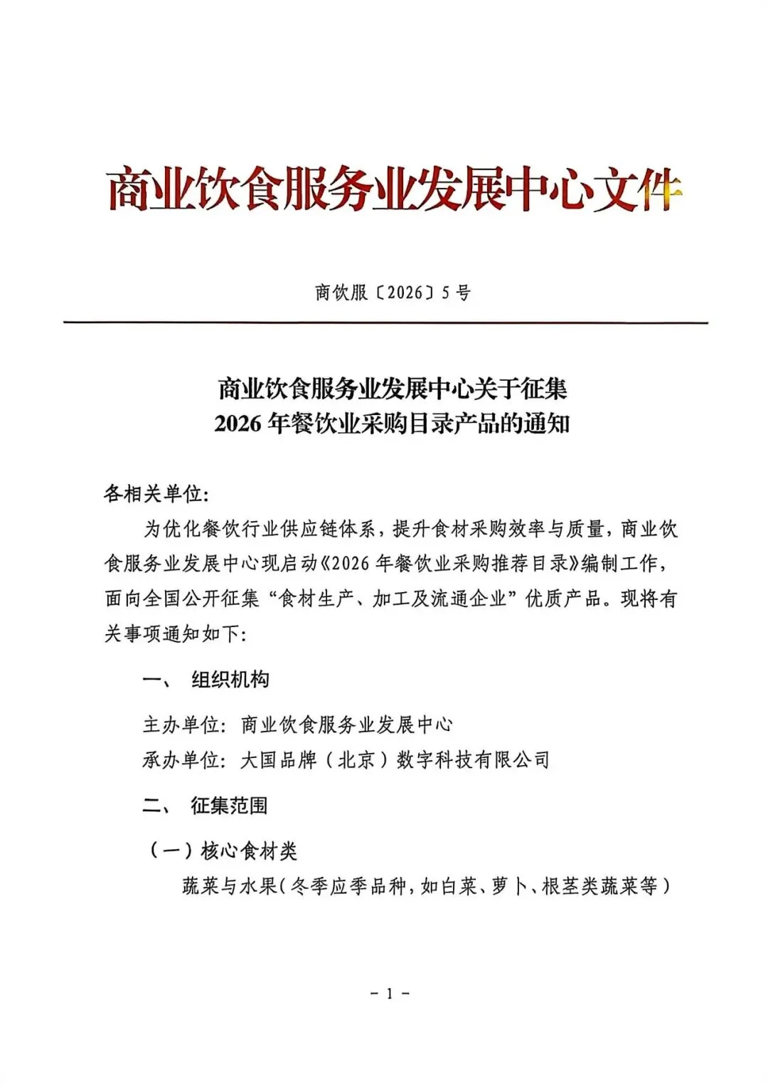 为优化餐饮行业供应链体系,提升食材采购效率与质量,商业饮食服务业发展中心现启动《2026年餐饮业采购推荐目录》编制工作,面向全国公开征集“食材生产、加工及流通企业”优质产品。现将有关事项通知如下: