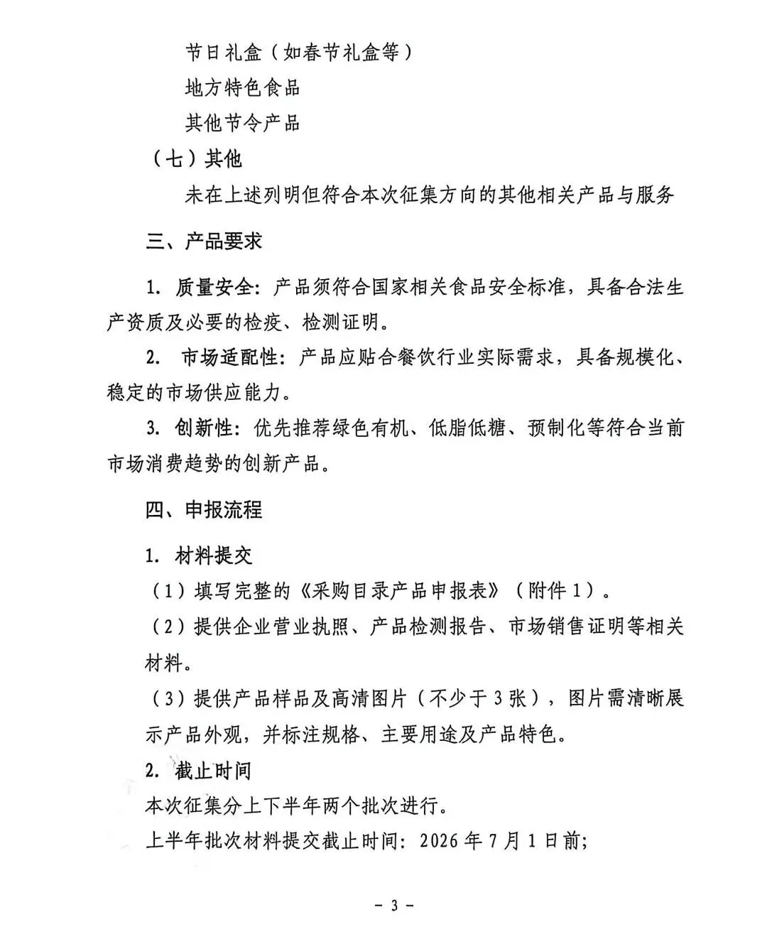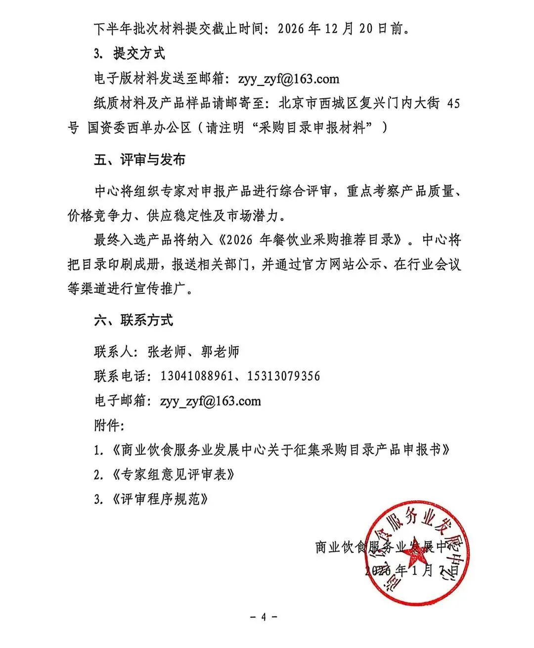 1.《商业饮食服务业发展中心关于征集采购目录产品申报书》
