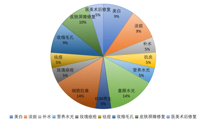 根据对求美者的调研,当前功效护肤需求展现“核心需求高度集中、基础需求均衡分布、小众需求精准卡位”的分布特征。