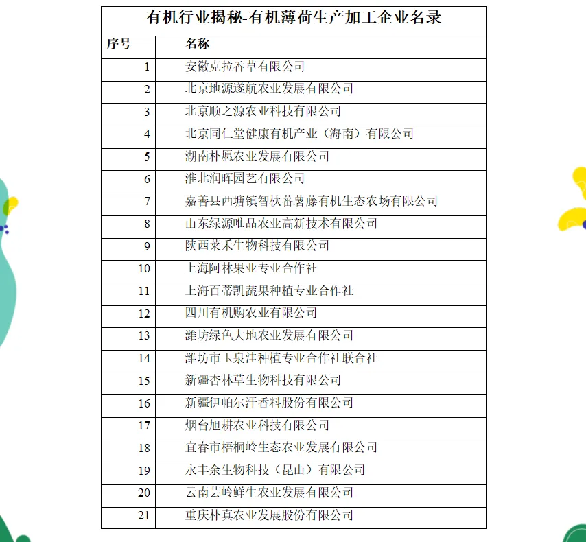 目前,经过中国有机认证的薄荷生产加工企业共有
