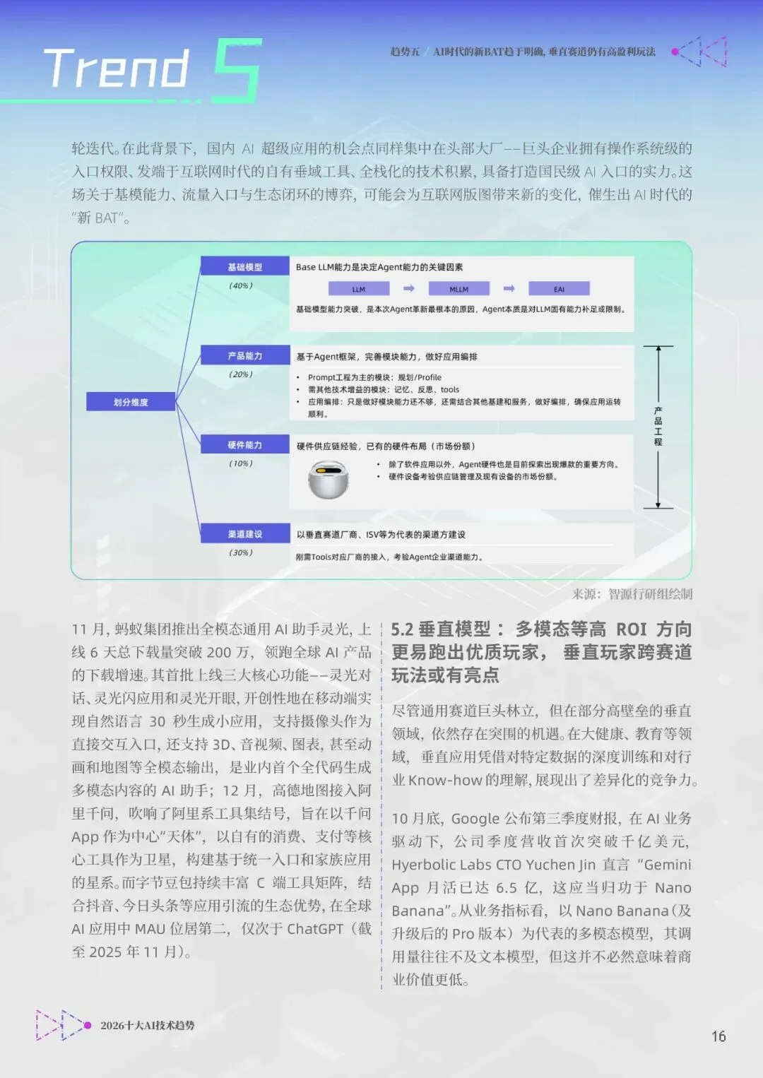 技术突破正驱动AI向多智能体协作、实体化与科学化方向演进。智源研究院(BAAI)发布的《2026十大AI技术趋势》就总结了今年人工智能的十大趋势: