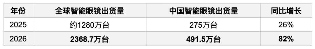 2026年被行业定义为“AI眼镜元年”,全球市场迎来规模化拐点。根据IDC预测: