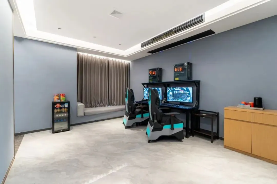 年轻人对游戏体验的高要求,推动电竞酒店在硬件与场景营造上持续升级,形成家庭与网吧难以替代的优势。2025年主流电竞酒店已形成标准化配置体系:显卡普遍采用4070Ti及以上型号,搭配240Hz高刷显示器、机械键盘与人体工学电竞椅,万兆网络覆盖率达92%,可流畅支持《黑神话:悟空》等3A大作及多人联机对战,解决了家庭配置不足、网吧环境嘈杂的双重痛点。