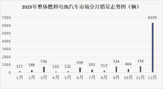 燃料电池汽车是氢能应用的先行先试领域,对于氢能产业发展具有重要的引领作用。2025年12月,国家燃料电池汽车示范应用政策末期窗口,我国燃料电池汽车市场终端销量达6335辆,同比增长798.6%,带动全年市场逆势翻盘,2025年全年国内共销售10782辆,同比增长51.2%,燃料电池汽车市场首次实现万辆级突破。