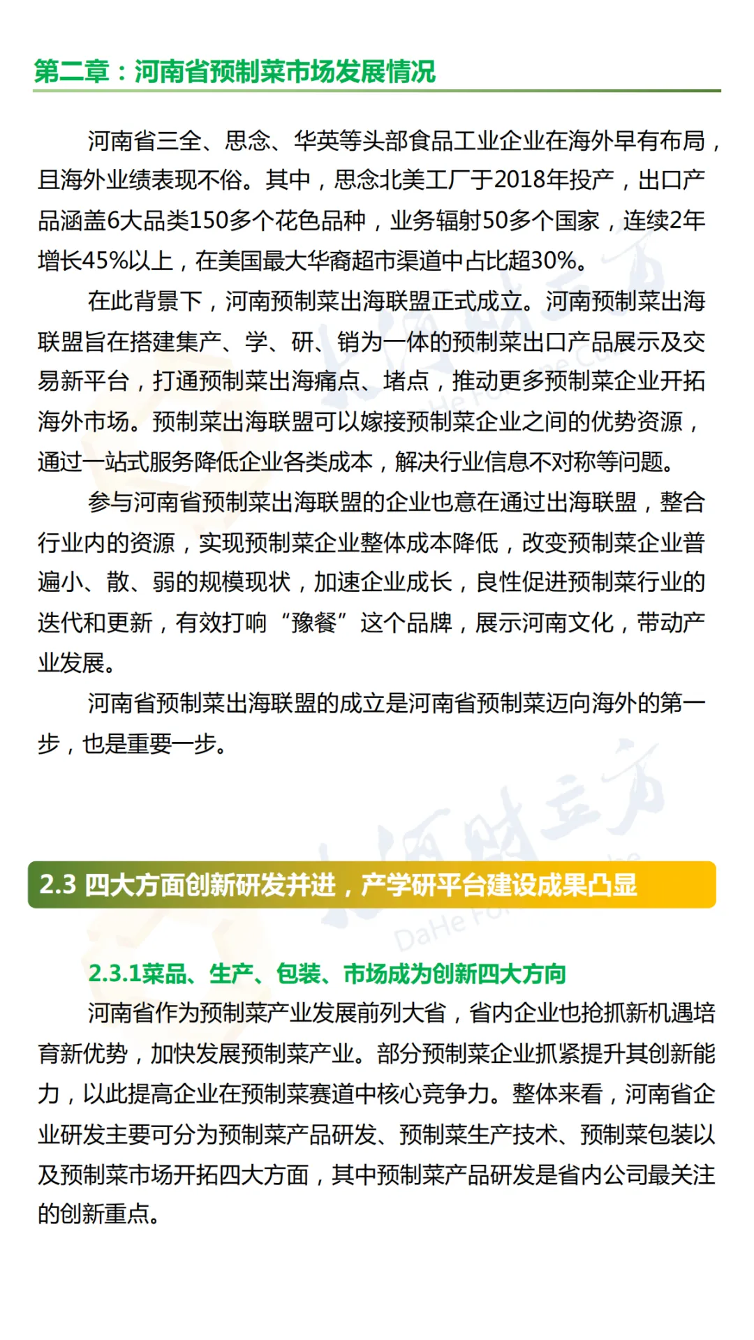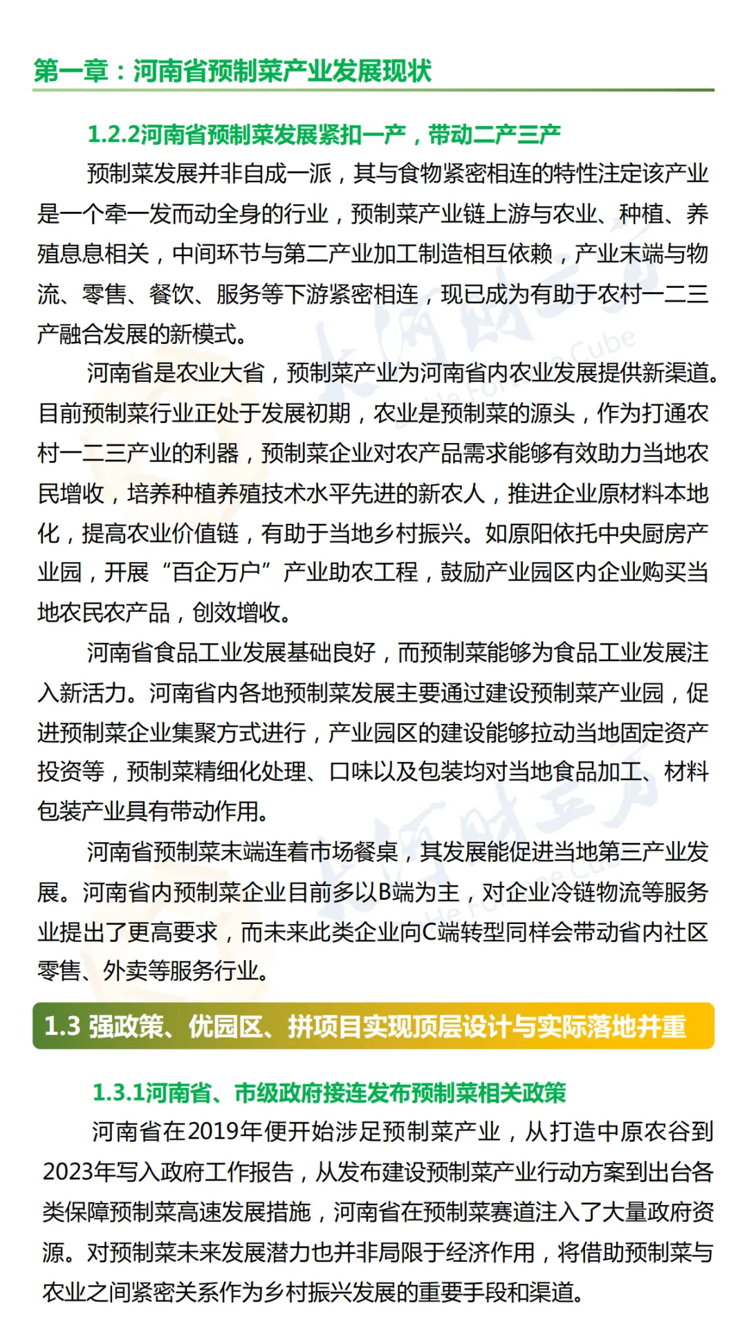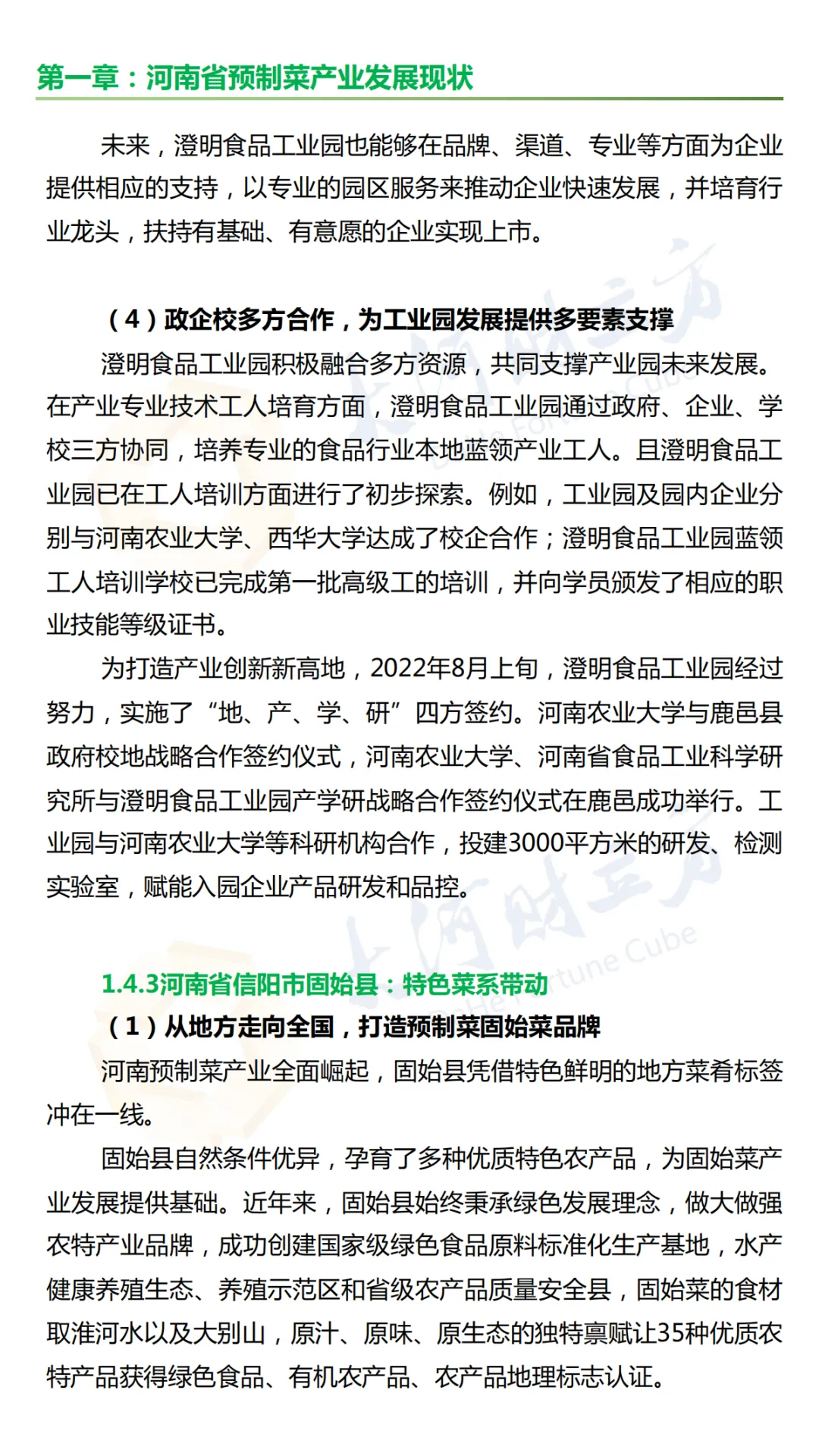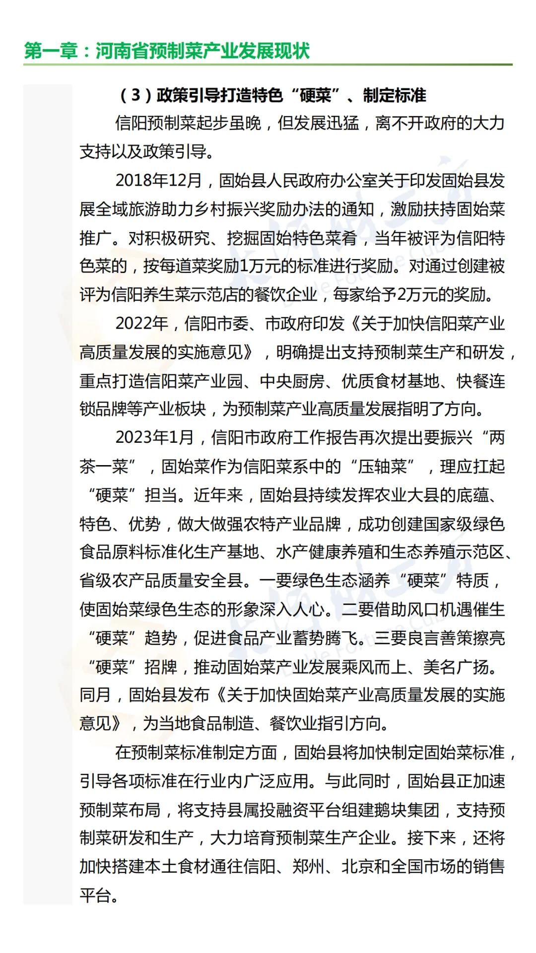 《河南预制菜产业发展报告(2023)》从全国与河南两大篇章入手,以探究全国和河南地区预制菜市场演变趋势。在全国篇,报告从预制菜产业的发展态势、市场需求变化、技术创新和竞争格局等方面梳理预制菜新发展特点,立体式呈现预制菜市场新风貌;在河南篇,报告立足河南省预制菜产业发展基础、预制菜企业发展现状、部分县市产业发展路径等,深入剖析河南省当前预制菜产业发展问题短板,找准河南预制菜产业发展道路。