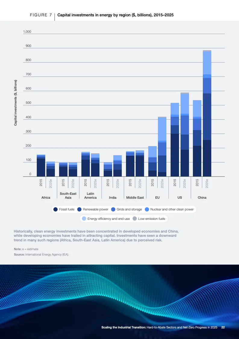 在欧洲加强合规之际,传统上以激励措施为主导的美国,在几项清洁能源措施(包括可再生能源和电动汽车税收抵免)退出后,面临越来越大的不确定性。这种分散正在重新定义工业竞争力——市场现在在不同的环境标准下运作,成本和激励很少一致。其结果是一个多速过渡。