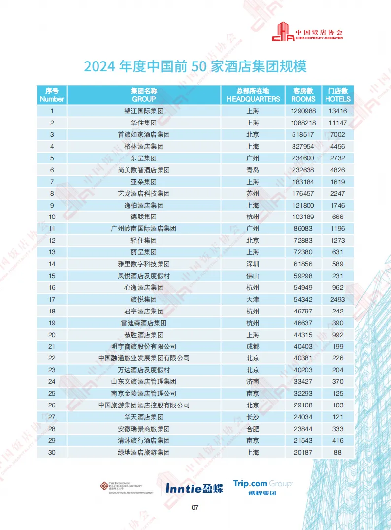 2024年中国连锁酒店客房总规模超707万间,同比增长4.68%,前50强酒店集团客房数占比超70%,前10强(含锦江国际、华住等)占比达60.48%,成为行业增长核心。细分市场中,中高端为增长主引擎,中端连锁酒店客房220万间,维也纳、全季等品牌领跑;高端客房突破120万间,亚朵、融通旅发等增长显著;经济型酒店进入存量优化阶段,汉庭、格林豪泰等通过产品迭代维持优势。行业呈现资本化整合加速、品牌化分层深化、国际化战略突破的特征,数字化与AI赋能成为重要动能,“专精特新”企业涌现。政策支持文旅消费释放潜力,酒店业加速智能化、高效化转型,部分集团通过轻资产模式布局东南亚等海外市场,同时文旅融合、绿色低碳等趋势为行业注入新活力。