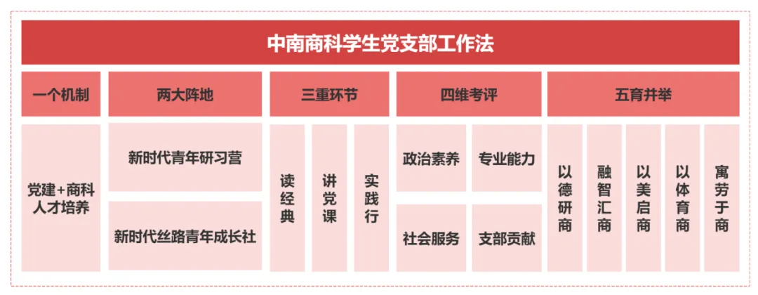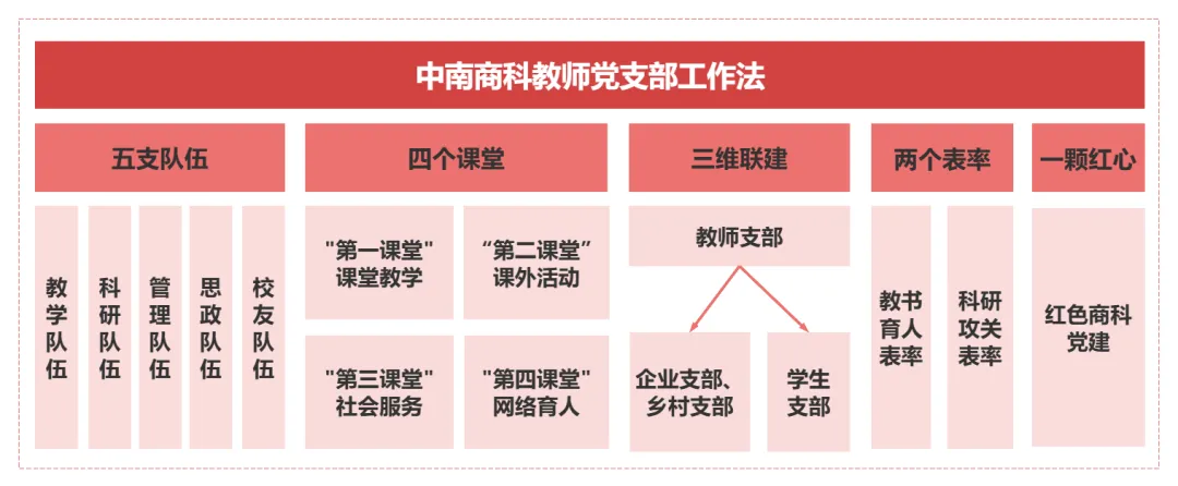 形成“中南商科教师党支部工作法”与“中南商科学生党支部工作法”,聚力立德树人,贯通成长链条。