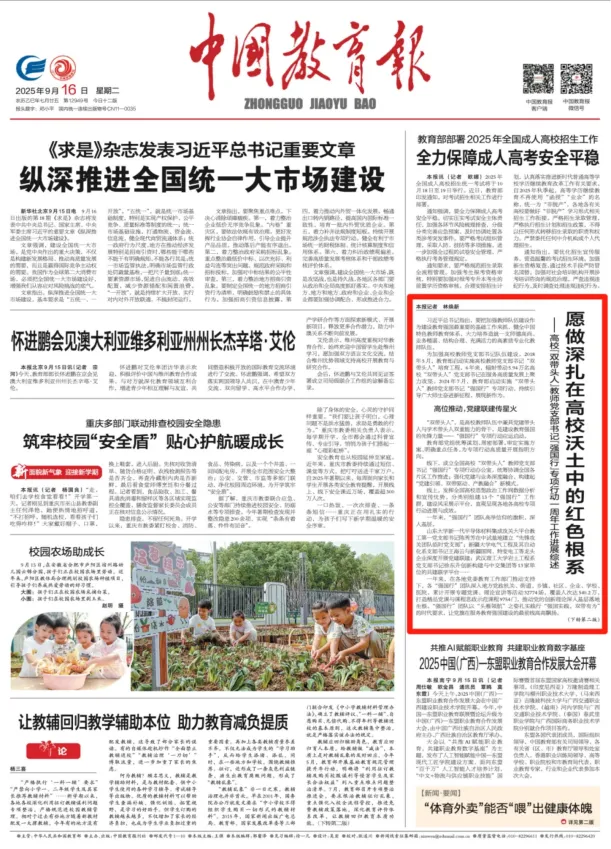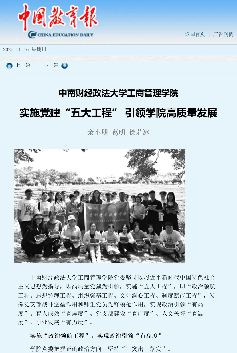 学院党建“五大工程”引领学院高质量发展的工作经验,刊登于《中国教育报》。