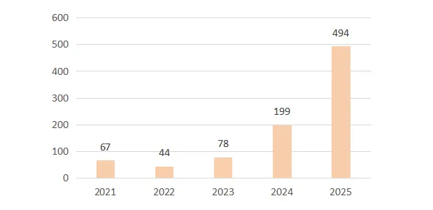 2025年成为中小银行“减量提质”改革的关键之年。全年共有494家中小银行业机构因合并或解散而注销,远超前四年总和。其中,村镇银行310家,占总数的62%;农商行160家,占32%。这一数字背后是监管层推动供给侧出清、降低潜在风险、避免无序竞争的坚定决心。