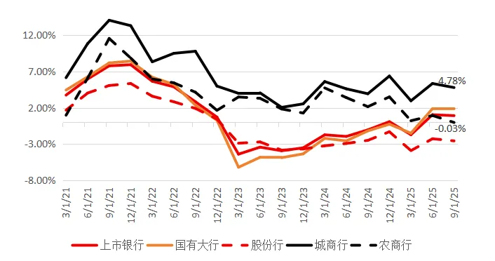 这种宏观环境的变化对不同类型银行产生了差异化影响。