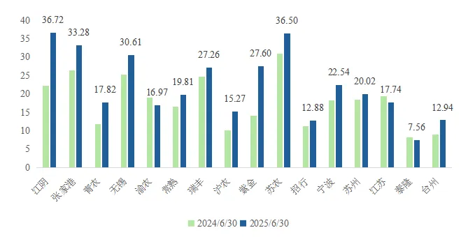 然而,投资收益的可持续性值得关注。一方面,低利率背景下票息减少。样本上市农商行2025年上半年债券利息收益率均值为1.08%,较上年同期下降0.15个百分点,票息对收益贡献趋弱。另一方面,在低利率低波动阶段,依靠交易获取超额收益的难度增加,投资收益对市场环境的敏感度上升。
