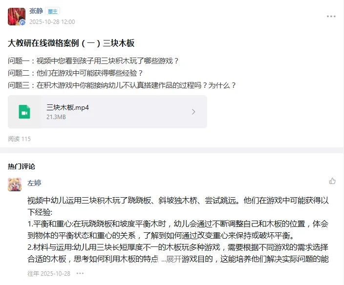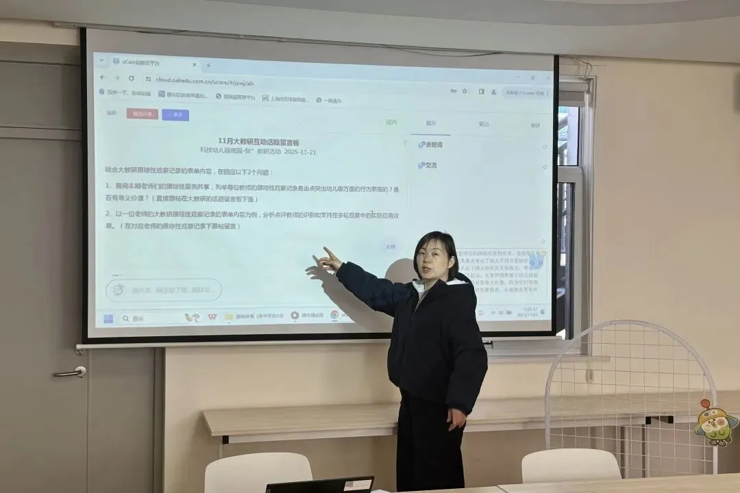 大教研以期末的课程故事交流收尾。教师们在倾听同伴的课程故事与经验梳理中,相互启发、互补短板,不仅深化了对观察反思理念的理解,更清晰看到了自身实践成长轨迹和不足,充分显现了本学期学习研讨的扎实成效。