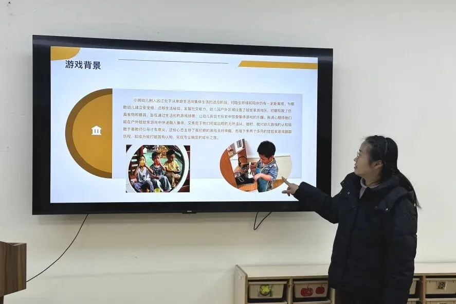 从完成户外游戏材料的分类、收纳与补充,解决室内外材料适配性不足的问题;到聚焦观察记录实操优化,通过“清洁工”“酒店”“小舞台”等游戏案例微格分析,帮助教师提炼观察重点、精准分析幼儿行为;再到优化游戏案例跟踪表单,明确表单撰写规范,推动“倾听—观察—回应—跟踪—优化”完整闭环的形成。游戏工作坊从基础保障到精准适配,再到能力提升与体系完善,层层递进。