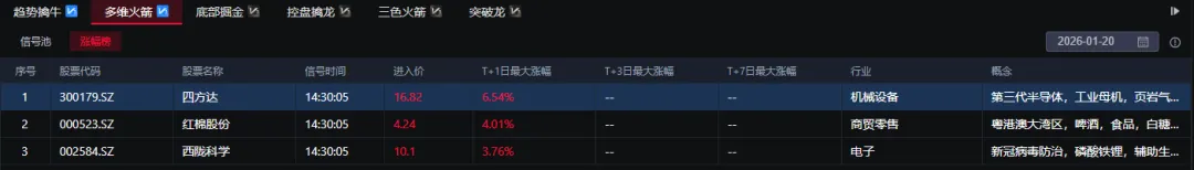 以上为昨日1月20日入选的【多维火箭策略】涨幅榜