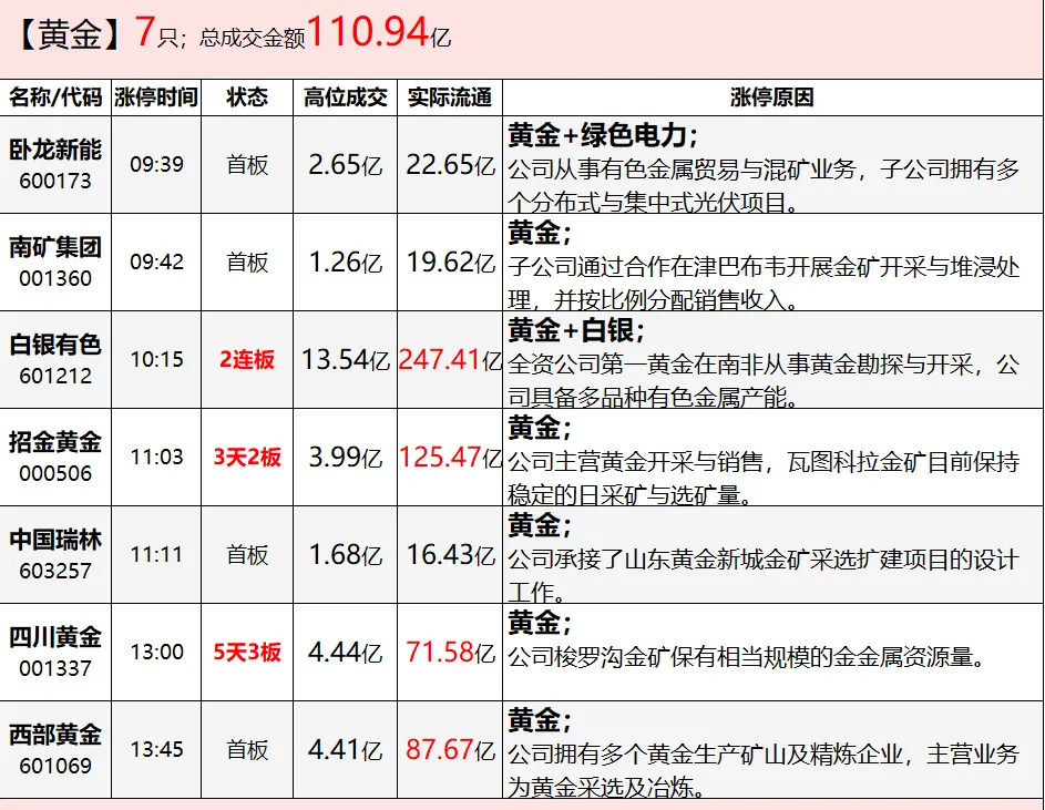 贵金属:板块全天强势,申万贵金属指数大涨7.97%,招金黄金、湖南白银、西部黄金等多股涨停。