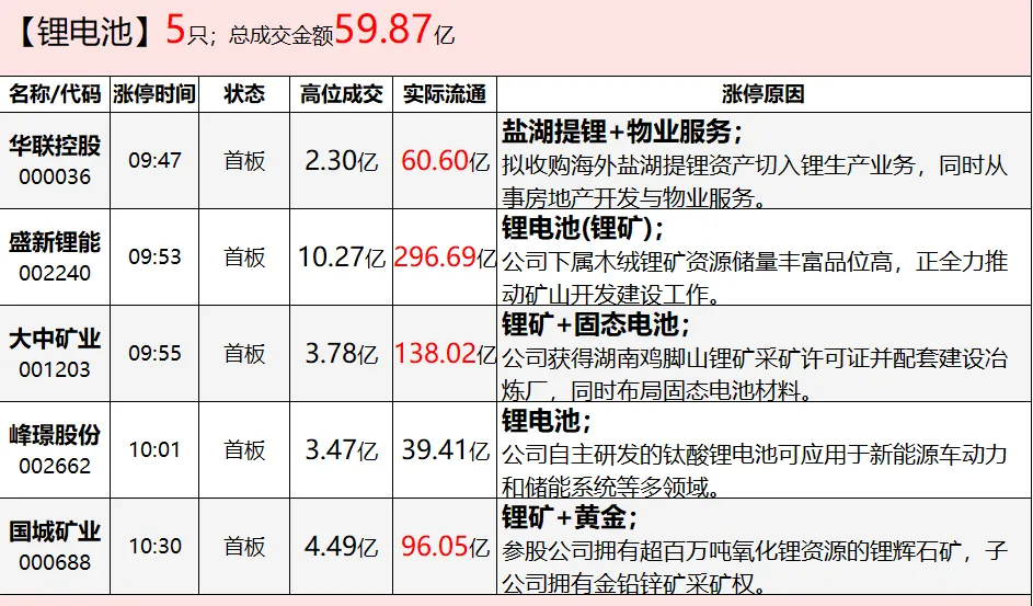 能源金属:锂矿概念股走强,盛新锂能涨停,板块涨幅超4%。