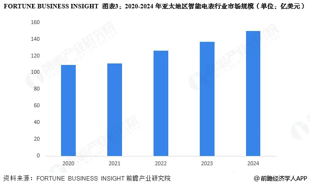亚太地区是全球智能电表应用的重要市场,根据FORTUNE BUSINESS INSIGHT披露的数据显示,2024年市场规模达到150亿美元,同比上涨9.5%左右。