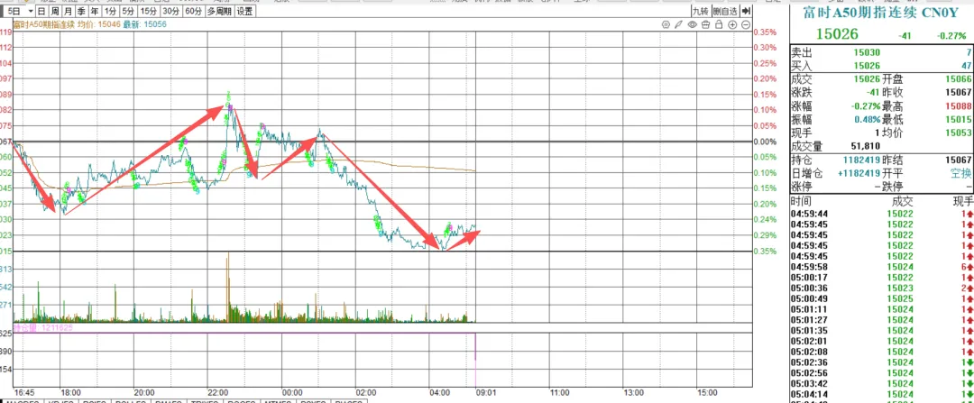 隔夜富时A50期指走势