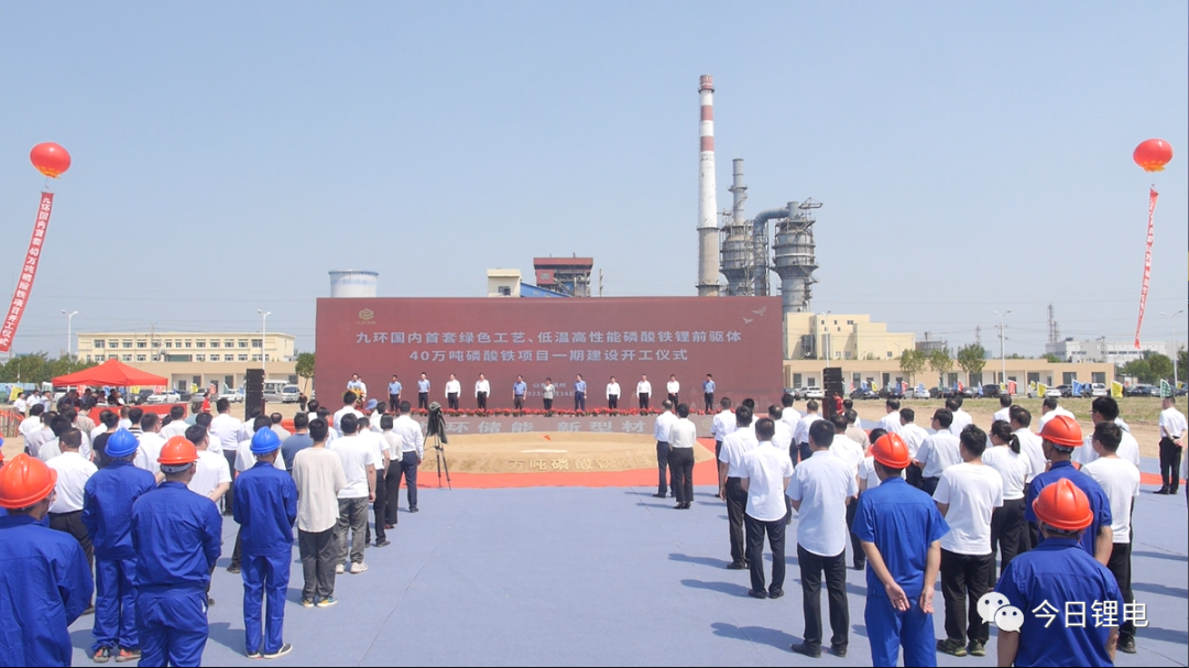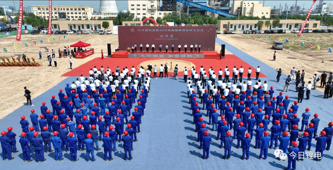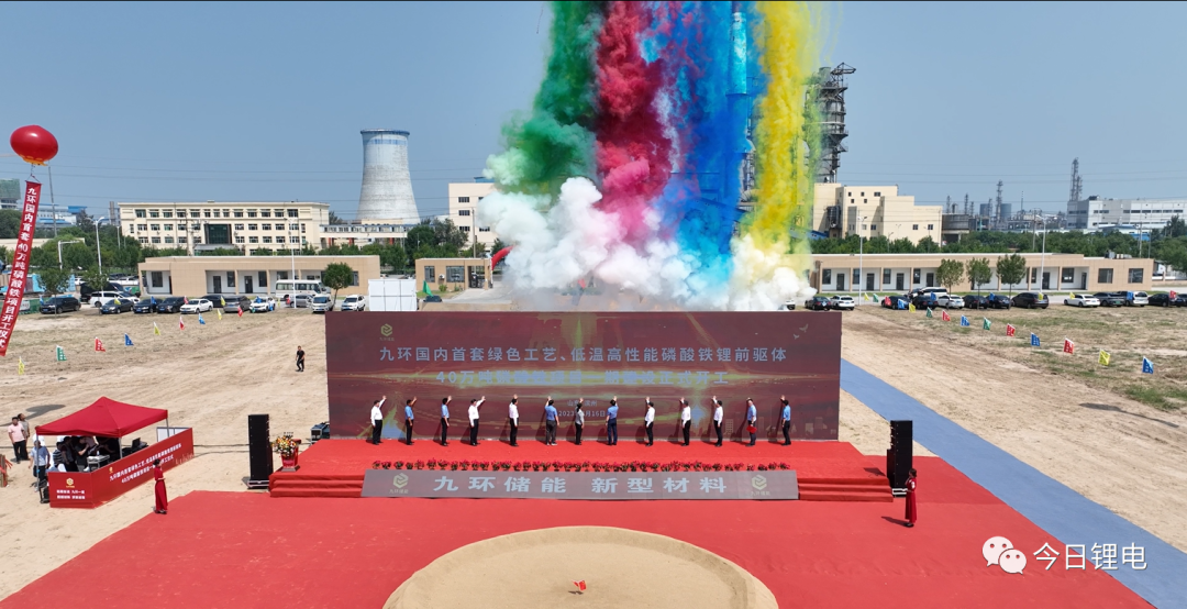 8月16日上午,国内首套绿色工艺、低温高性能磷酸铁锂前驱体40万吨磷酸铁项目一期在山东省滨州市滨城区九环储能科技有限公司举行开工仪式。滨州市政府各相关部门领导,九环储能科技有限公司董事长辛民昌博士、总裁辛程勋博士,九环新型储能产业首席科学家李长明院士,九环新越新能源电池材料首席专家、总工程师吴超博士及多家国内主流媒体齐聚一堂,共同见证开工盛典。