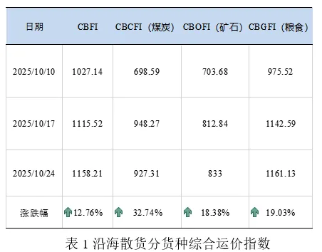 上海国际航运研究中心航运发展研究所发布《中国沿海干散货运输市场双周报(2025.10.11-2025.10.24)》。